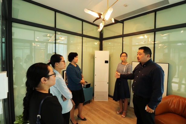 4月18日,奇信铭筑董事长王世丹(中)接待王向昱秘书长(右三)一行