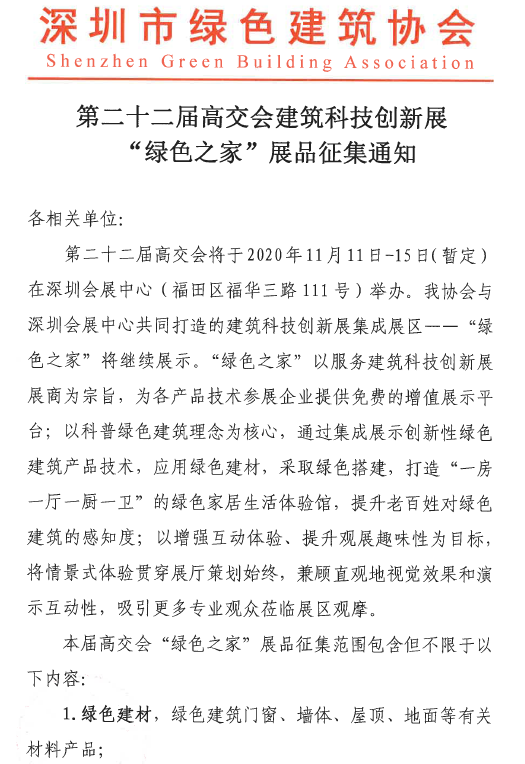 下一条:2020高交会建筑科技创新展“绿色之家”展品开始征集啦!