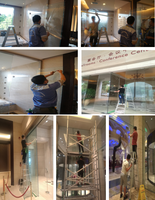 运用高精度电解质溅射喷涂法,由PET提炼而成的透明强度复合聚酯纤维内入金属原子层,俗称“安全防爆膜”,具有高透光性(可见光透过率86%以上),抗拉强度1700kg/cm2,拉伸系数160%,抗强酸、抗强碱,在高温下也能保持物理性能的良好状态;厚度规格从4mil-16mil,安防性能从普通防爆抗撞击至最高防弹级别。特殊处理的电磁敏感胶层,抗剥离强度高,组成一个玻璃薄膜保护系统,增强玻璃强度3-9倍,可有效防止玻璃碎片飞溅,保护幼儿园、医院、商场、学校、酒店、地铁等公共设施建筑内外的人员不受飞溅的玻璃碎片的危害;强大的抗撞击能力,可有效阻止不法人员对博物馆、银行、珠宝店、政府机关等重要场所的违法入侵;同时也是应对暴雨、台风、地震等自然灾害对室内造成破坏的有力手段。优点:施工方便,不改变玻璃规格,不影响室内采光,安全环保。