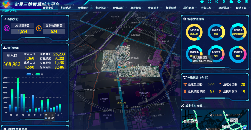 观讯信息研发的GX City 3D三维管理平台,实现实景三维数据快速加载,负责三维场景渲染。三维模型根据倾斜影像匹配确定体块构模而成,地形、建筑物等模型一体化表示,模型的纹理以获取的航空影像表现。建筑物三维体块模型应完整,位置准确、具有现实性,应与获取的航空影像表现一致。智慧城市建设以城市空间可视化为主,以城市级三维建筑物建模为背景,通过多源地理信息数据,如数字高程模型(DEM)、遥感影像数据、矢量数据、三维模型等,构建城市级大尺度信息模型平台,实现多场景、多终端的交互体验。实现基础场景构建、数据加载、自由浏览、图层管理、地图导航等基础功能。