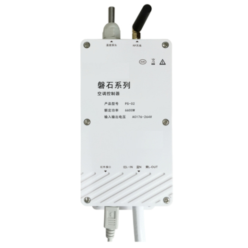 磐石系列单相柜式空调控制器PS-02是一款用于柜式空调集中管理的控制终端,在空调集中管理系统中起着监控、记录、控制空调运行状态的作用。 空调控制器具有对空调开机、关机、运行模式、工作温度、风速等进行控制,还可通过内部继电器控制空调电源;计量空调用电;根据不同的开关机时段控制空调开关机状态,有效实现空调节能。 空调控制器通过电力线载波或无线与智能路由器进行远程通讯。在监控中心可远程控制空调,实现空调节能降耗。
