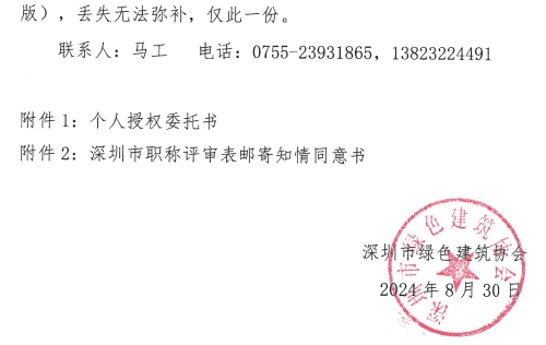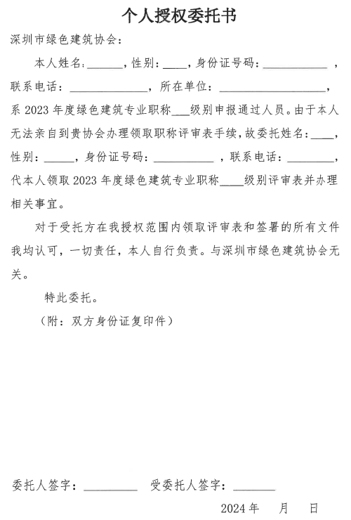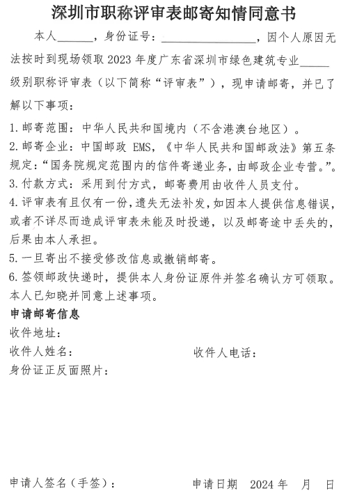关于领取2023年度广东省深圳市绿色建筑专业职称评审表的通知