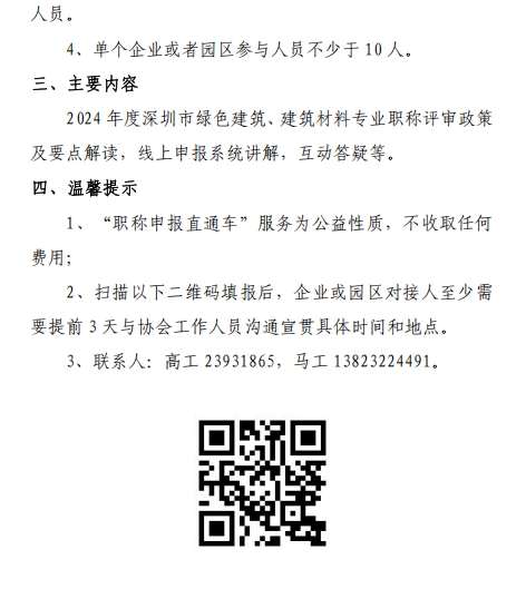 关于开展“2024 年度深圳市绿色建筑专业、建筑材料专业职称申报直通车”的通知