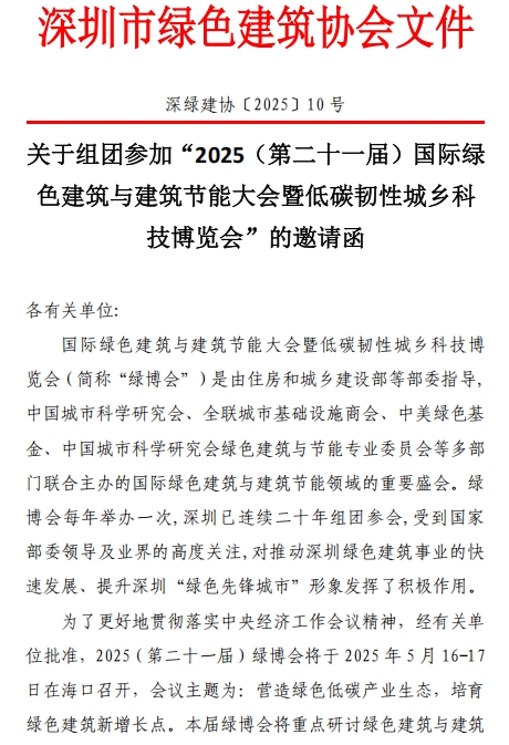云博国际网站关于组团参加“2025(第二十一届)国际绿色建筑与建筑节能大会暨低碳韧性城乡科技博览会”的邀请函